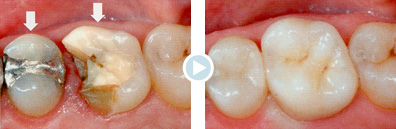 | 奥歯に入れた金属は意外と気になるものです。かけた歯の治療と同時にオールセラミックにすることで、天然歯と変わらない白さと輝きを得ることができました。 | ![]() |
